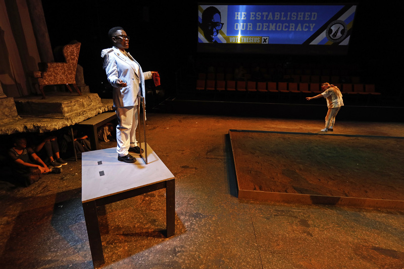 The cast experiment with different ways of spatially expressing Theseus’ sense of superiority,